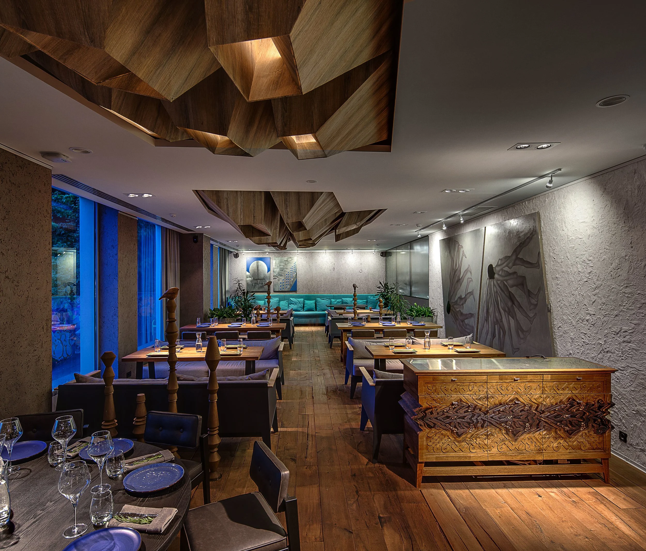 The main concept of the restaurant is to show present-day Ukraine, with its ancient traditions, everyday life, deep roots, and interpret it through the modern viewpoint. BARVY turns a traditional perception of a restaurant into the venue for regular exhibitions of talented Ukrainian artists.