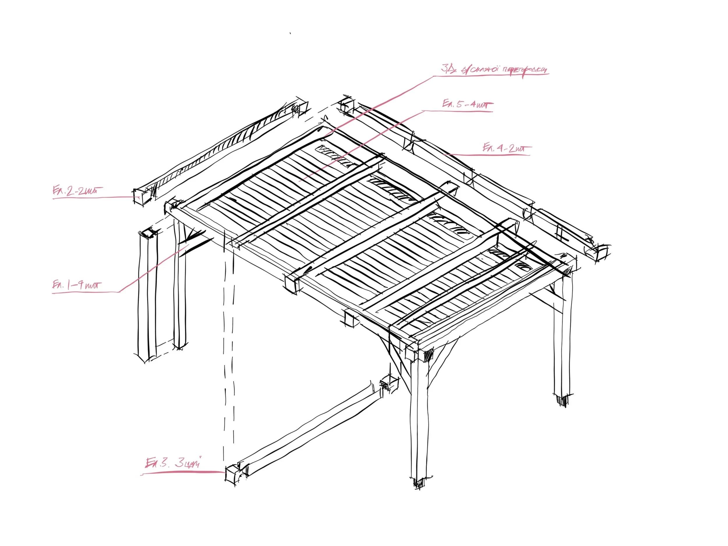 Переговорна Woodcraftвиконана за принципом збірного каркасу з брусів, в якій комунікації винесені за межі перекриття.