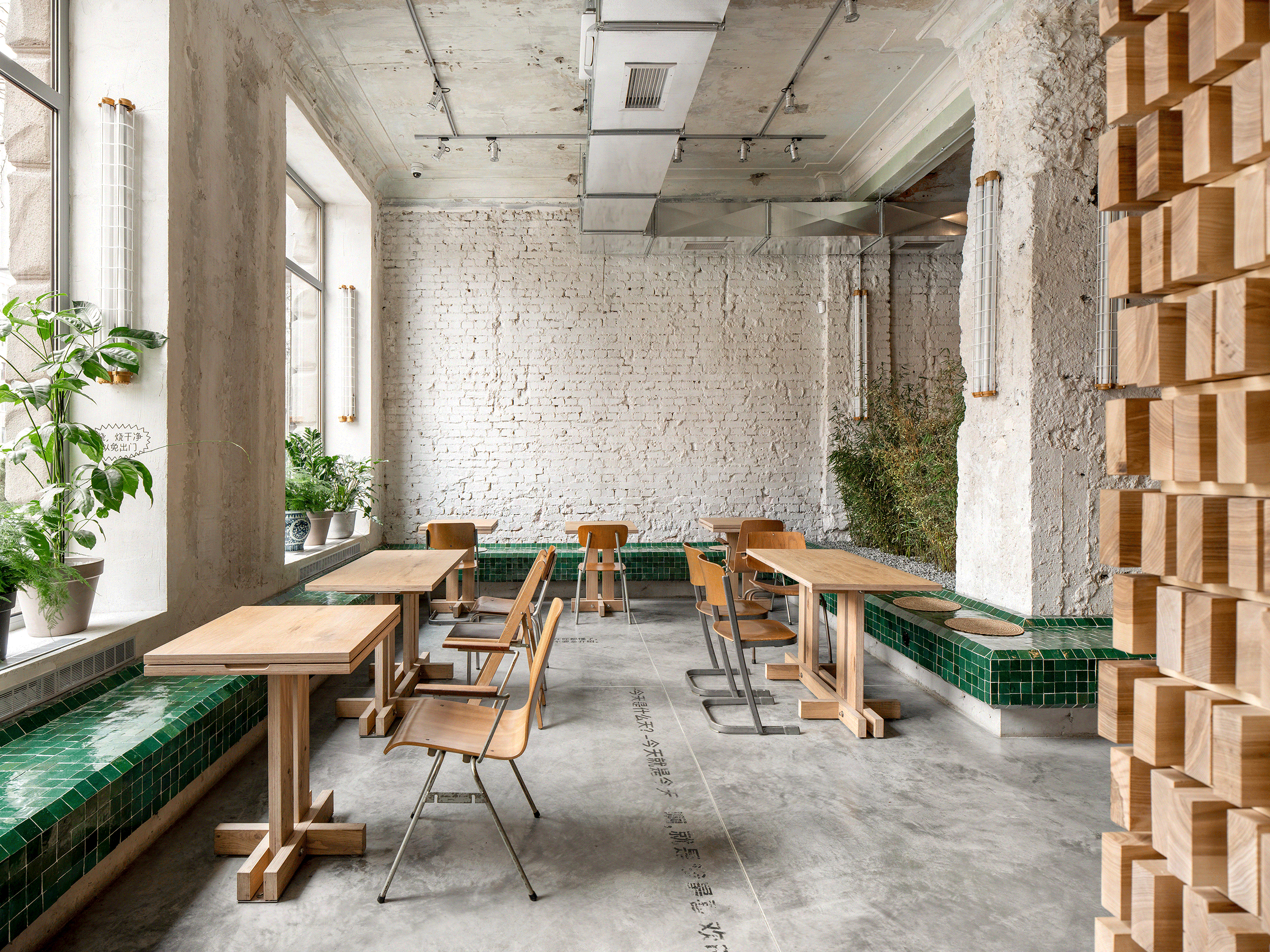 Many Asian cafes are inspired by Chinatown decor: neon signs, red lights and other attributes customary to these neighborhoods. Our team, on the other hand, tried to distance itself from the image of the city and sought inspiration in the rural landscapes of Yunnan.