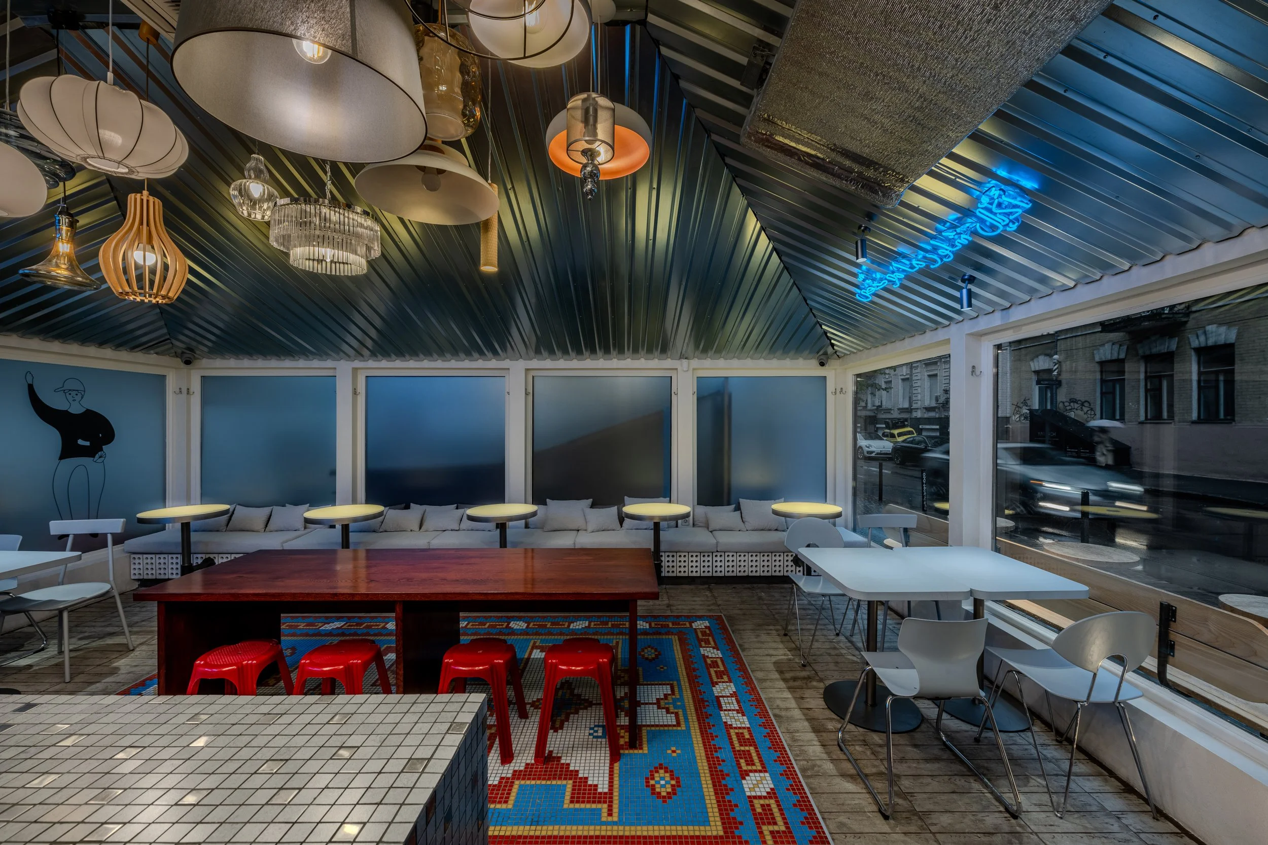 Designing the street food café with shawarma NUNU, we consciously opted out of high design – we wanted to create a comfortable and sincere place with clients who share our sense of humor and self-irony. The intention was fulfilled – we'll be happy to visit here again and again.