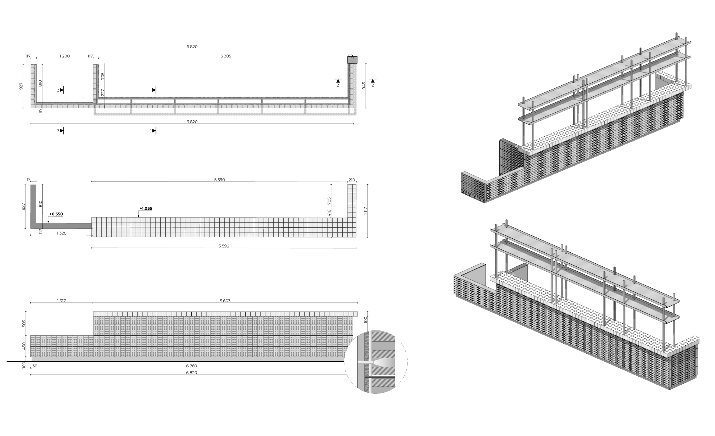 The establishment was supposed to open 1.5 months after the start of dismantling. Due to tight project deadlines, we decided to keep the existing floor covering and reconsider the perforated brick in the interior, from which the bar of the previous owners was made. We also needed to arrange the inner courtyard and utilize its additional space.