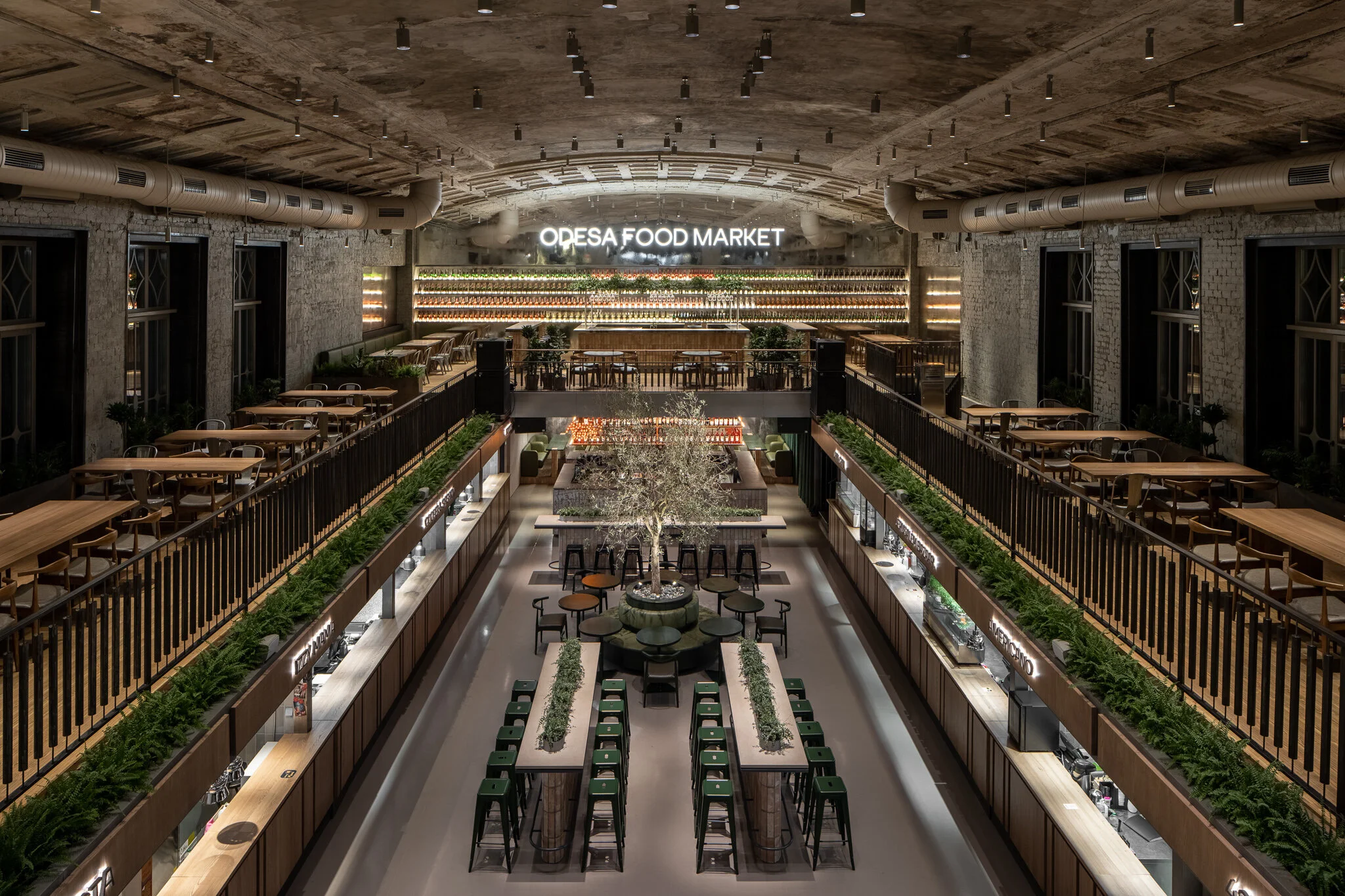 The main goal of our client was to improve the quality of Odesa Food Market through the reformatting of the interior space. After three years of the market’s existence, the needs and the quality standards of the guests have transformed. It became evident to us which of the previously implemented solutions no longer work or can be improved. Our experience with Kyiv Food Market allowed us to analyze the shortcomings and to implement the strong points. Although the vision for the renovation of Odesa Food Market started off as an "easy cosmetic repair", the whole design underwent significant changes in the process.