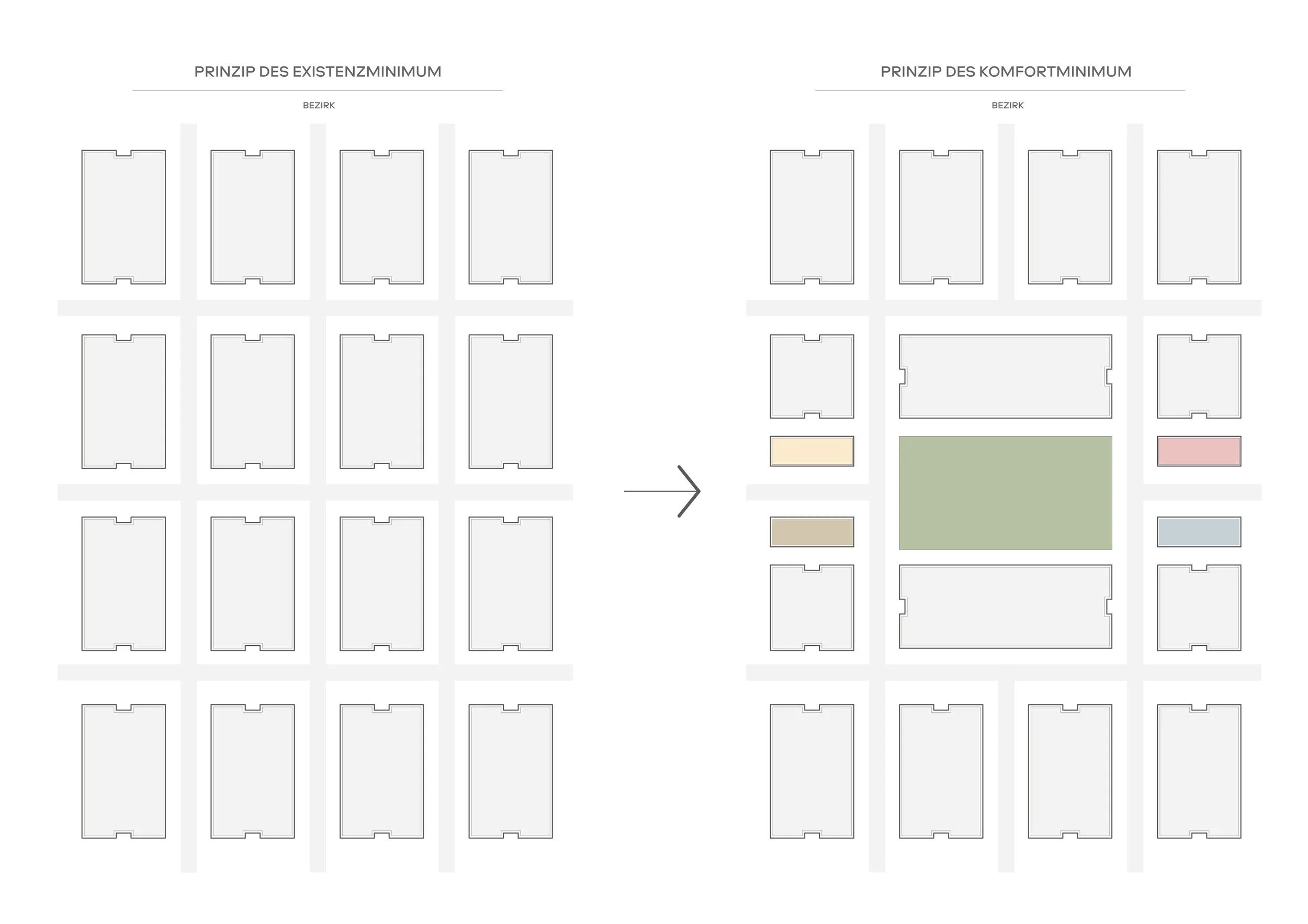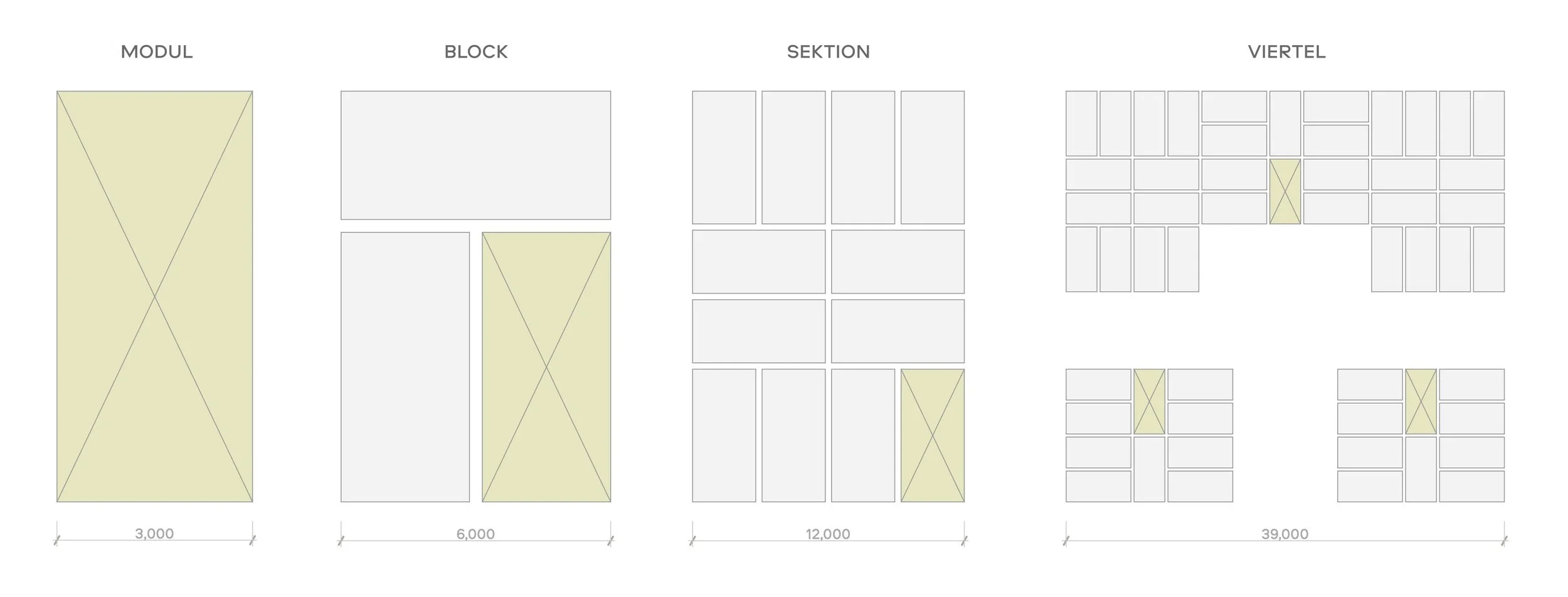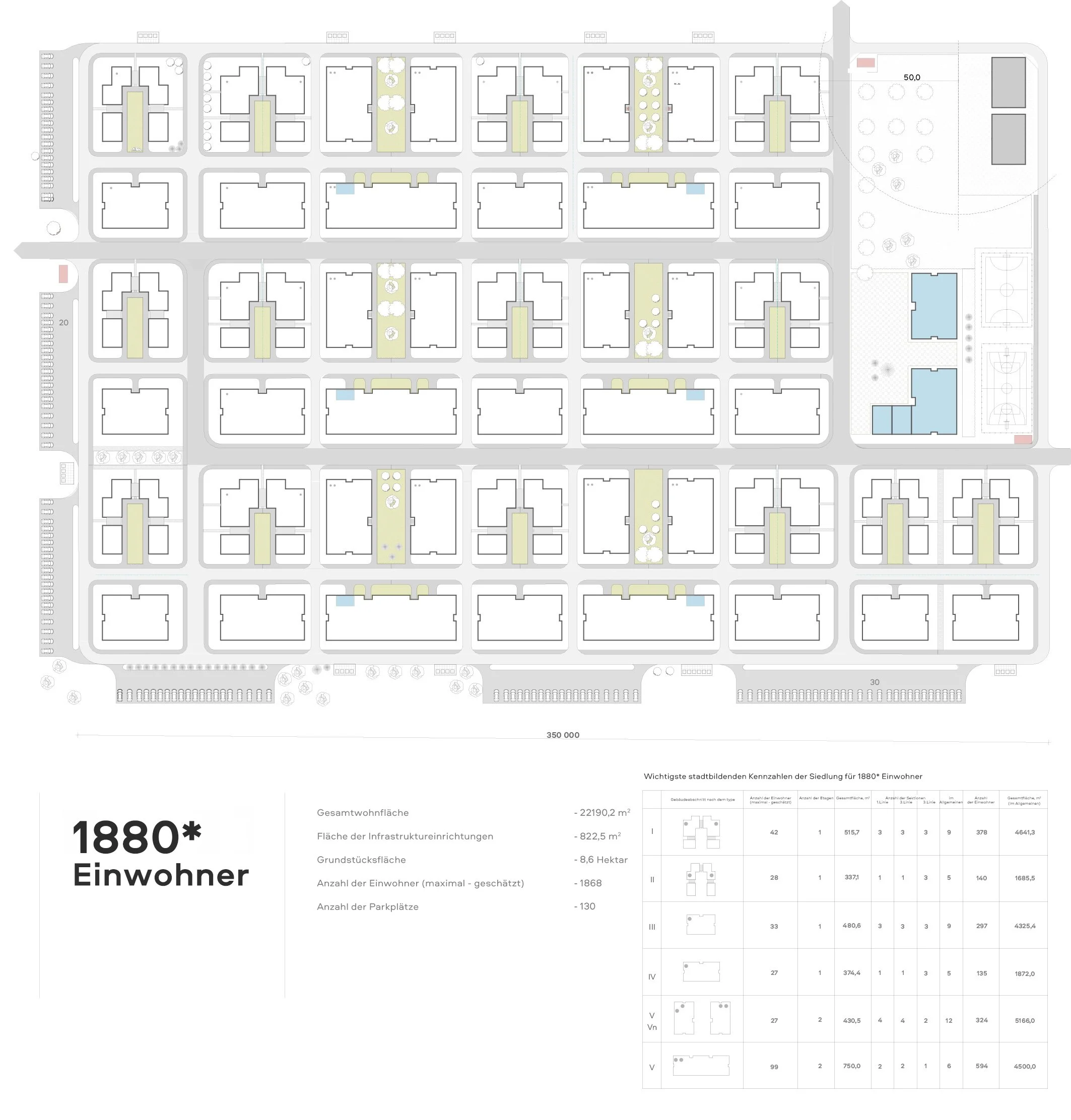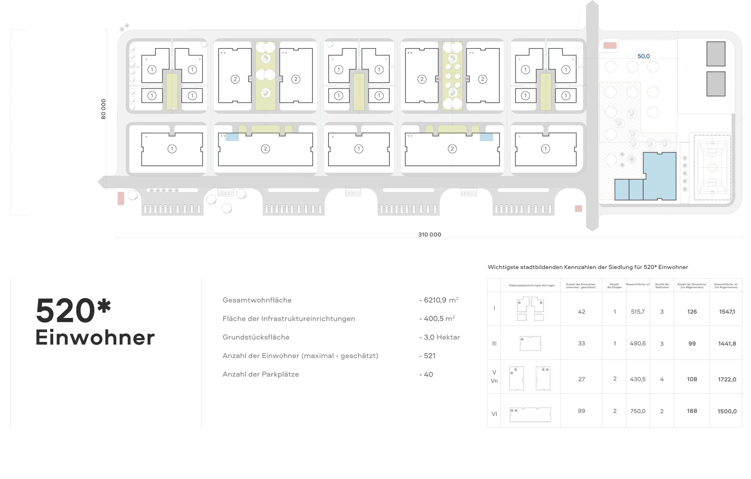 Der Wohnblock ist modular und universell einsetzbar und legt den Maßstab für die ganze Projekteinheit fest. Somit kann das Wohnviertel alle bestimmten Anforderungen erfüllen.