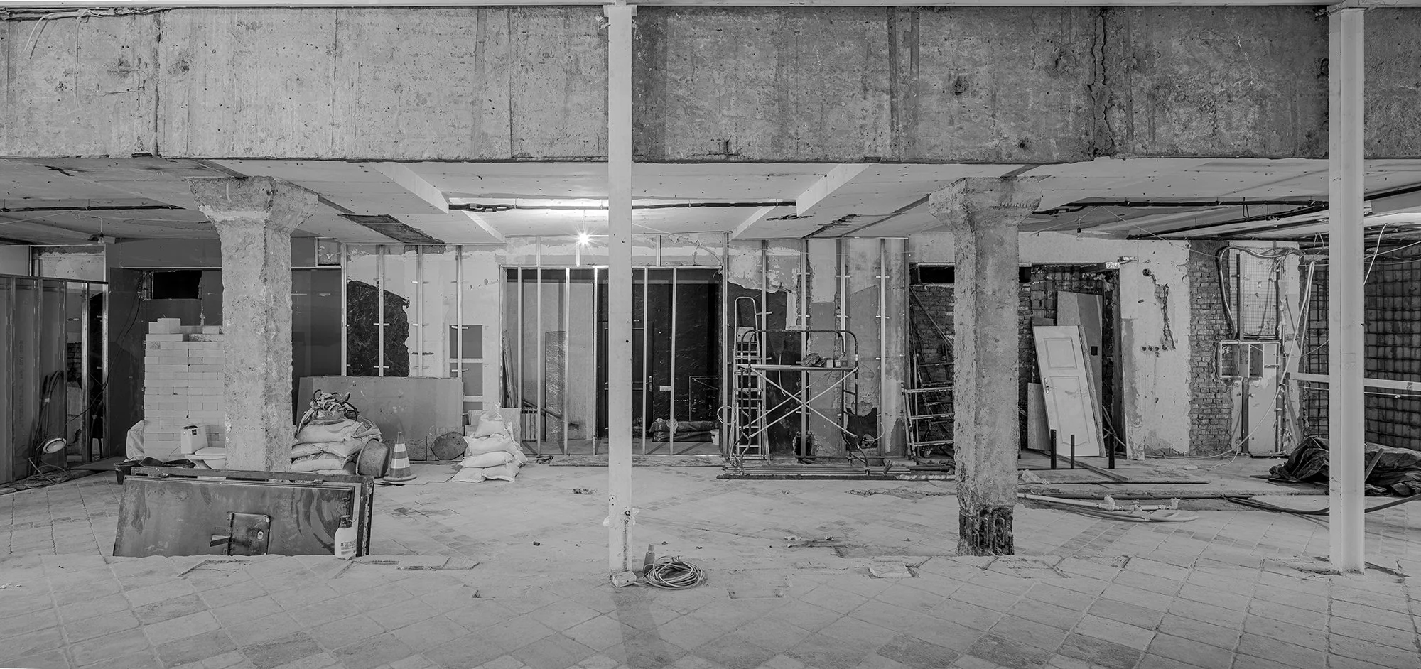Викликом стала й велика кількість різногабаритних колон. На цокольному поверсі їхні «п’ятки» (бази) були з’єднані з фундаментом і не підлягали демонтажу. Посадку довелося розгортати навколо цих перешкод: частину «п’яток» колон вписали в інтер’єр, а частину приховали під подіумом.