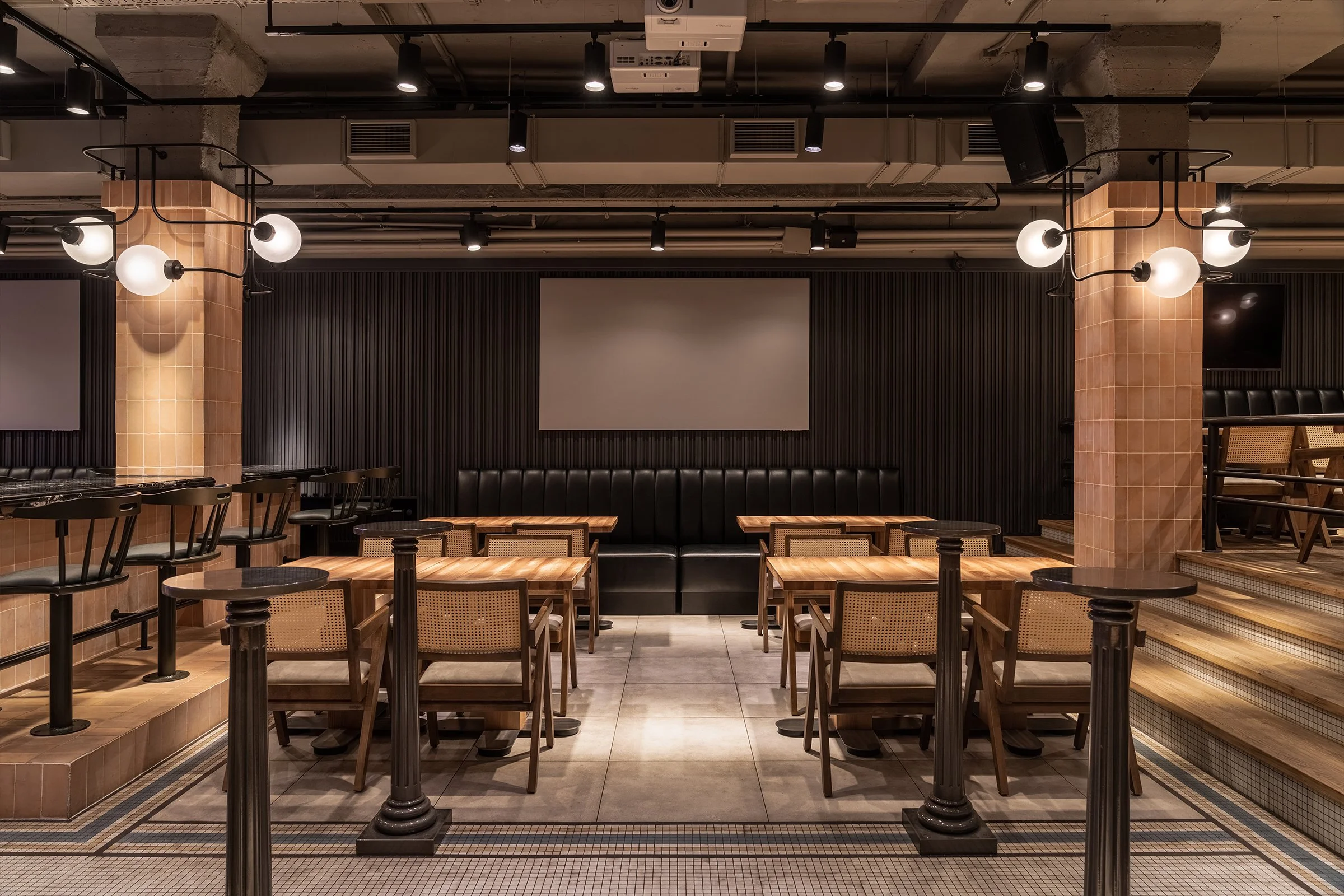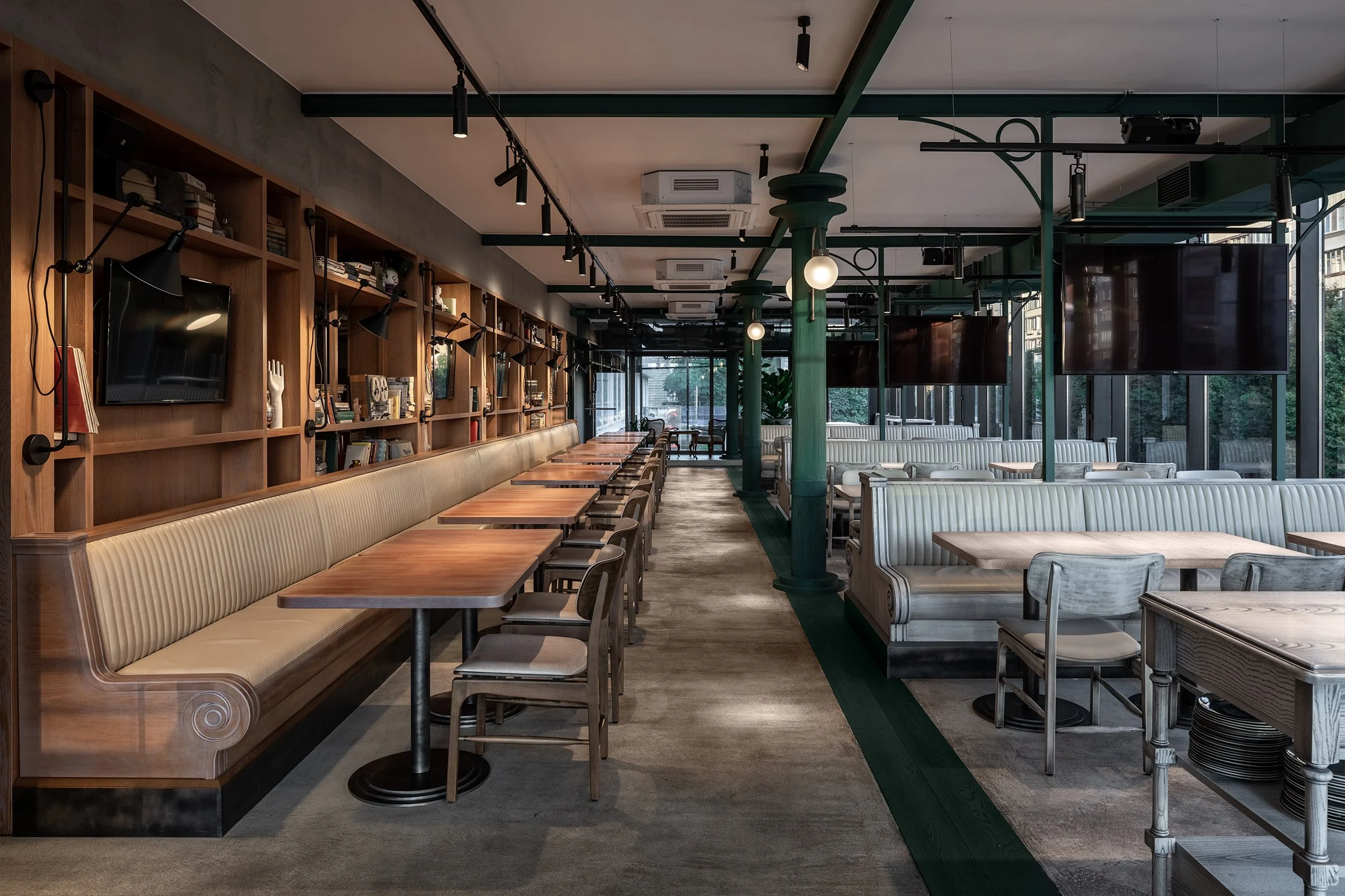 The main reference from the client was the crime comedy ‘The Gentlemen’ directed by Guy Ritchie. The owner of the establishment wanted to bring the atmosphere of an English pub and other locations that were featured in the film into the interior.