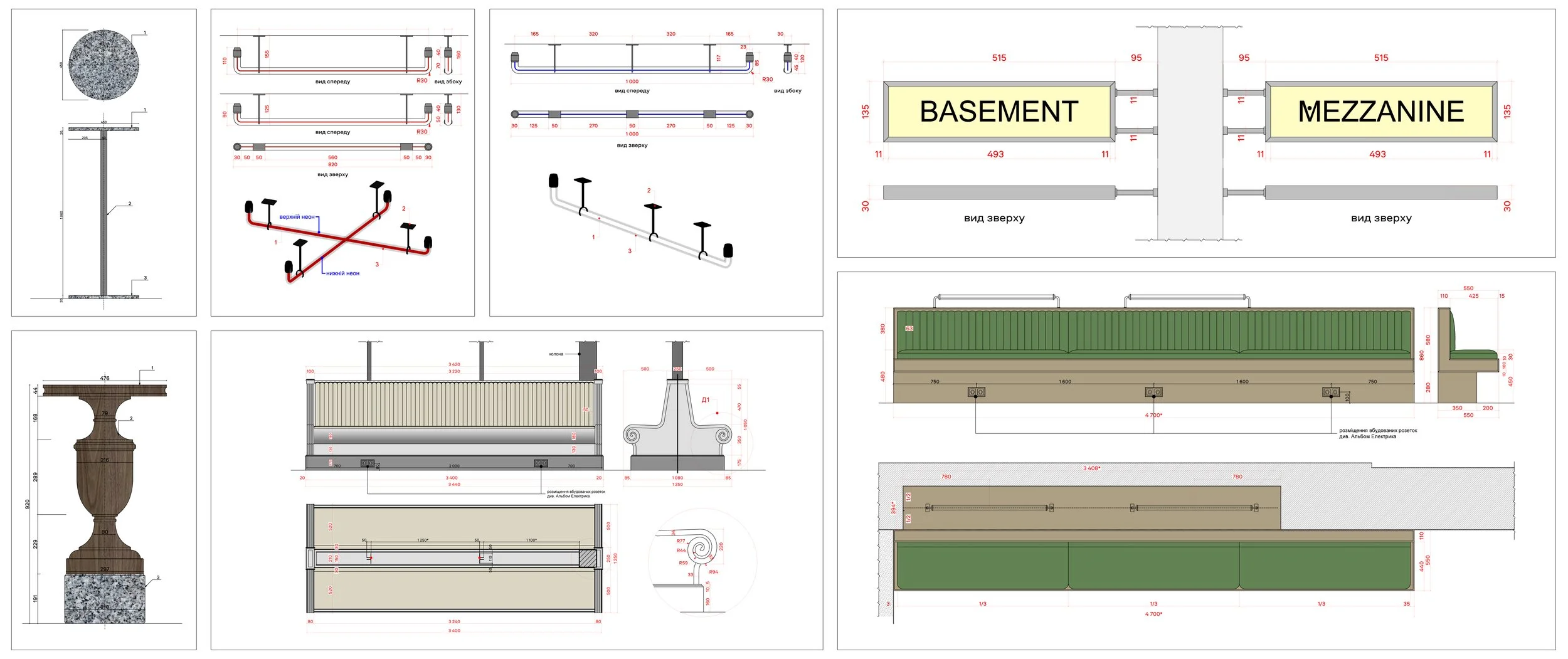 Most of the furniture and decorative elements for THIS IS PYVBAR PECHERSK were custom made. These include sofas made according to references based on real train stations and ten different types of tables with distinct legs and countertops. Even the door handles are custom in each bathroom.